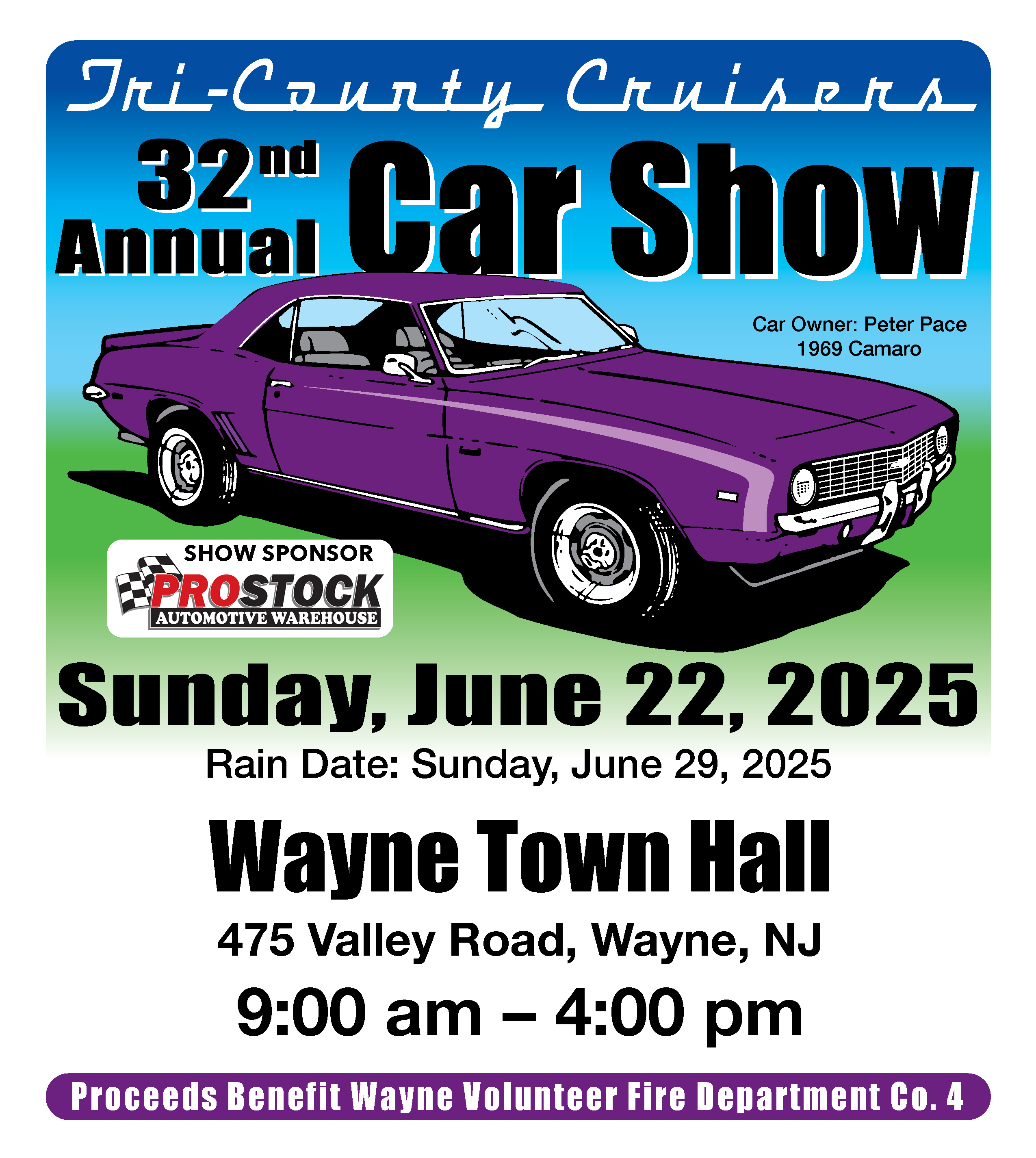 Annual Car Show to benefit Wayne Fire Company #4.
